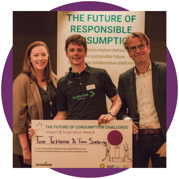 Tom Siebring and Tom Tetterro won the Impact and Inspiration Award for their ‘CollAction‘ idea. They developed a digital platform to connect people and make collective challenges fun and easy.