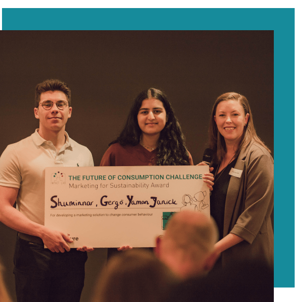Shuminnar Singh, Gergő Mezei, Yaman Namli, and Janick Scheenhart won the Marketing and Sustainability Award for their ‘Transit and Go!’ idea of an app, which allows individuals to take on the job of delivering posts while running a daily errand or going on a holiday.
