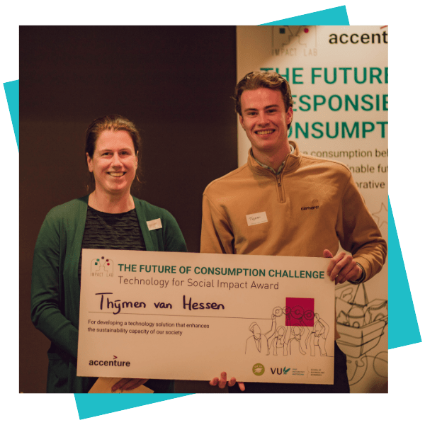 Thijmen van Hessen won the Technology for Societal Impact Award for his idea of ‘Reducing digital carbon footprint’. He proposed to develop a campaign to create awareness about digital consumption.